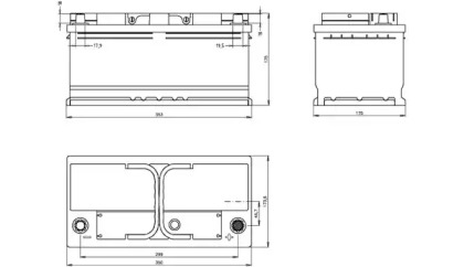 Battery Brand: VARTA Battery Code: 5740120683132 Voltage: 12 V Battery Capacity: 74 AH Cold Cranking Amps (CCA): 680 A Post Positions: 0 Terminal Type: 1 Hold-down Type: B13 Length: 278 Width: 175 Height: 190 | |